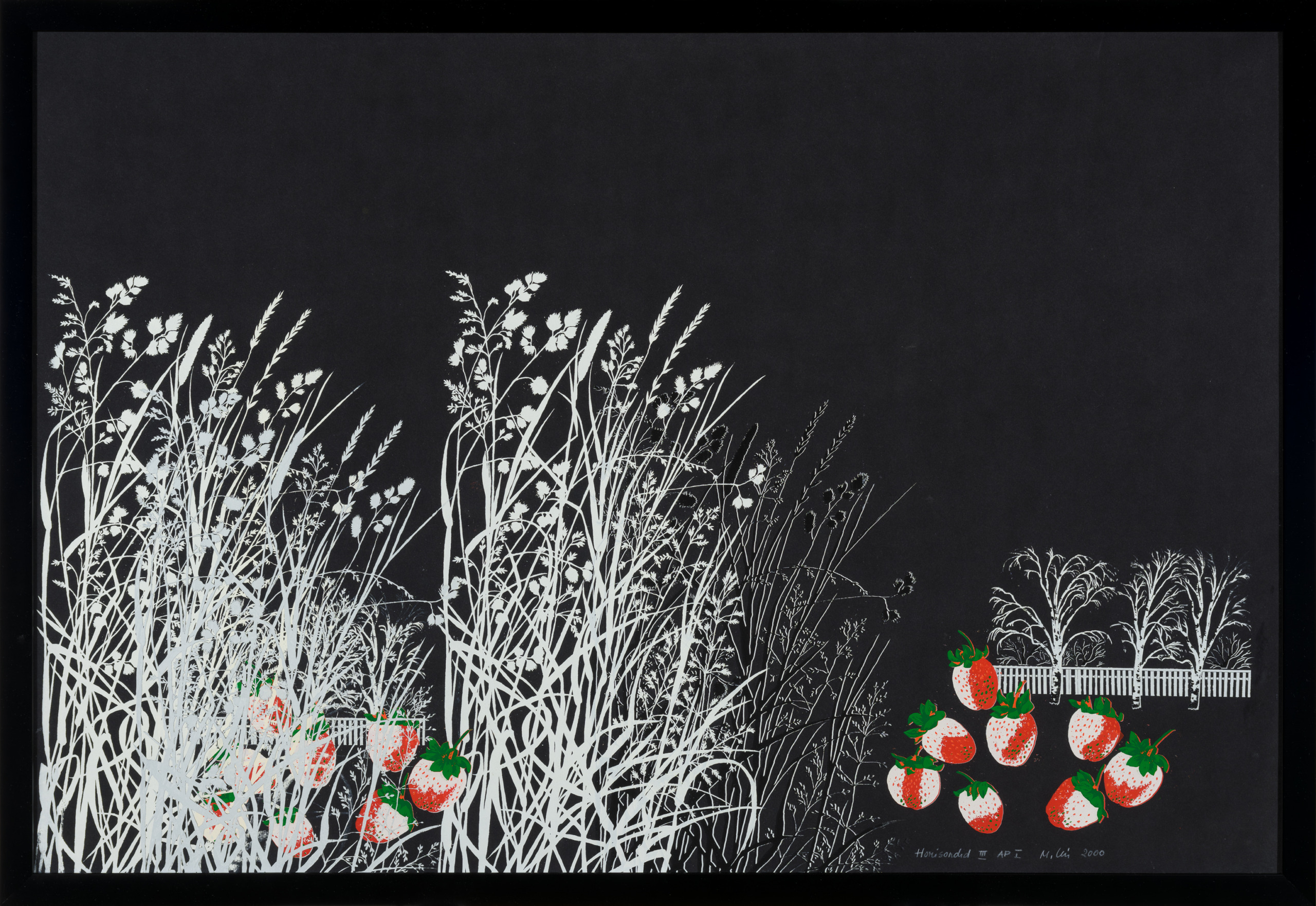 Malle Leisi (1940-2017) loomingus muutuvad loodusvormid iseseisvateks kujunditeks, mis võtavad kunstniku jaoks väga isikliku, sooja ja inimliku kuju. 2000. aastal Kunstihoone galeriis toimunud näitusel „Horisondid ja hääled“, kus osales ka käesolev teos, saatis Leisi loomingut heliinstallatsioon, mille oli kokku sättinud kunstniku abikaasa Villu Jõgeva. Suvine putukate sumin sobis hästi ilmestama Leisi vabast ja metsikust loodusest inspireeritud teoseid, mille märksõnadeks olid vabadus ning minna laskmine. Omamoodi hüvastijätt oli see ka kunstniku pikale serigraafiate perioodile, mis antud näitusega siiditrükile lõpuakordi tegi.
