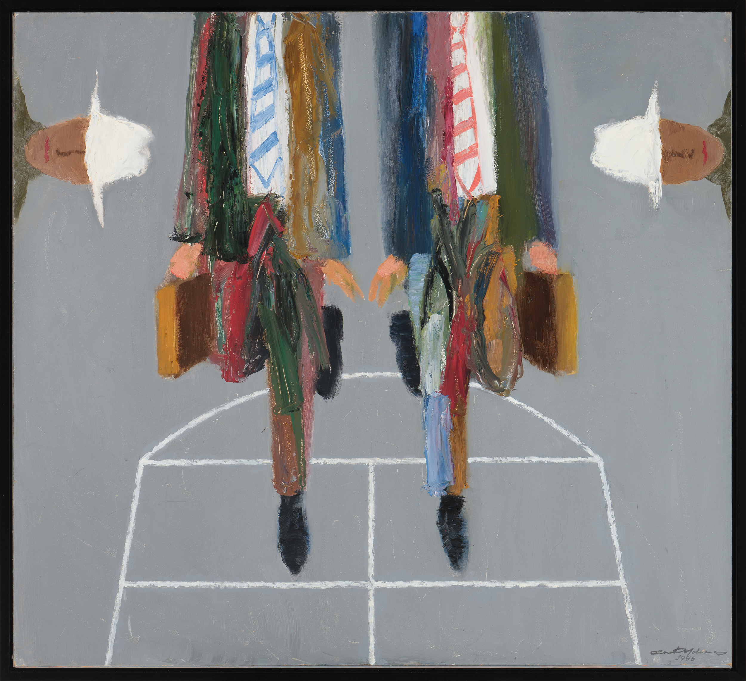 Enn Põldroosi (1933-2025) suureformaadiline maal “Keksumäng” on autorile iseloomuliku iroonilise sõnumiga teos – elu on mäng, aga igal mängul on omad reeglid. Kaks täiskasvanud lipsustatud ja ülikonnas meest keksu mängimas on juba iseenesest kummaline vaatepilt, kuid Põldroos keerab satiirilise vindi üle nende keha- ja näopartiisid lahutades. Triibulised lipsud, portfellid ja kaabud viitaksid justkui ühes kindlas ametkonnas töötamisele, ent loomulikult on tegemist mõistujutuga, millega igaüks võib siduda kõige erinevamaid tähendusi.
