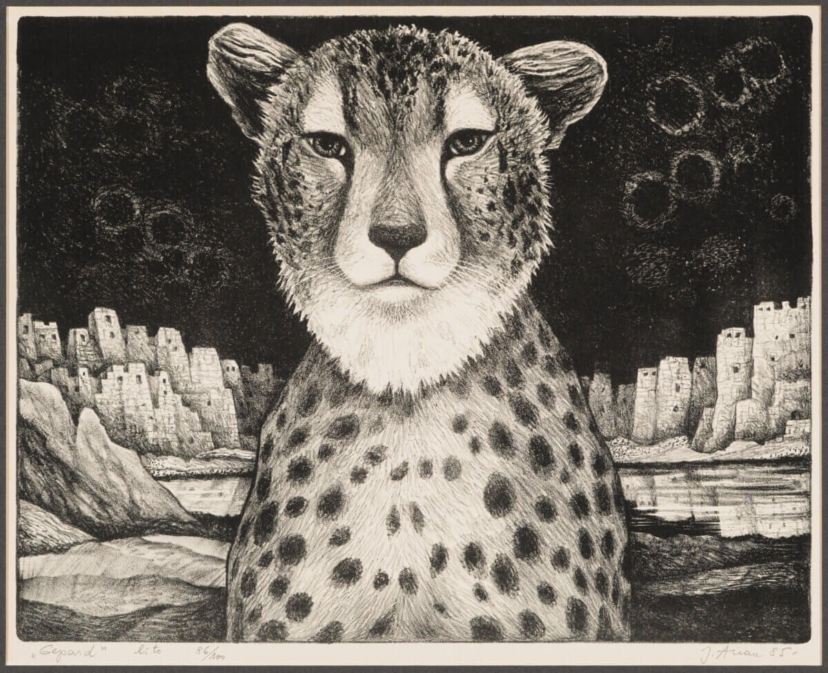 1980. aastail ilmus Jüri Arraku (1936-2022) loomingusse märkimisväärselt enam loomi. Lisaks lõvidele ja tiigritele inspireeris meistrit veel üks eriline kaslane – gepard, kiireim loom maismaal.