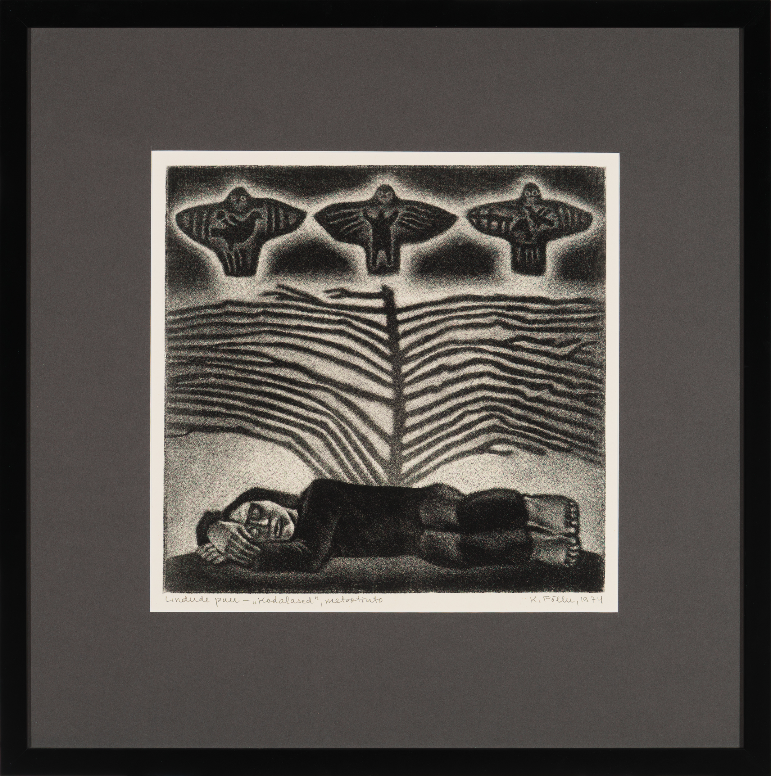 Eesti rahvusmütoloogilise kunsti suurmeistri Kaljo Põllu (1934-2010) üheks olulisemaks graafiliseks suurteoseks on monumentaalne, maalilisena mõjuv 25 tööst koosnev metsotintosari “Kodalased” (1973-1975). Selles sarjas uuris Põllu rahvusliku identiteedi süvakihte, kasutades arhailisi sümboleid, et rääkida inimese, looduse ja esivanemate vaimuilma vahelistest seostest.