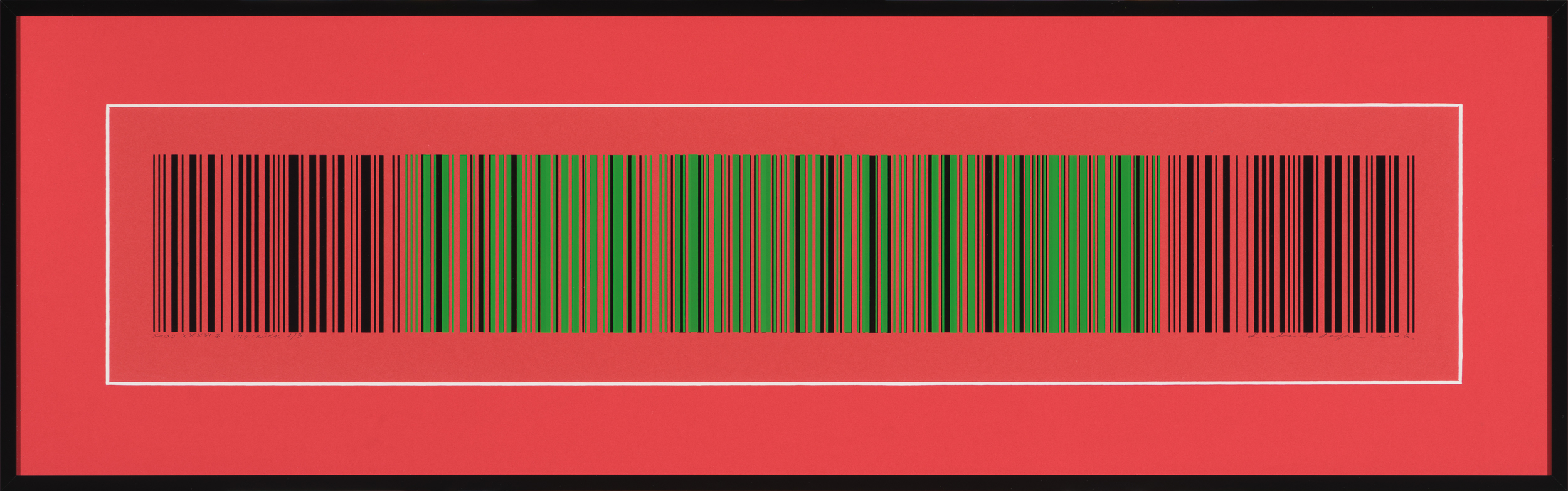 Leonhard Lapin (1947-2022) alustas masinliku ilu esteetikat rõhutava abstraktse “Koodide” seeriaga 2003. aastal. Kunstnik loob siin läbi vertikaalsete joonte rühmitamise vöötkoodilaadse struktuuri ning paneb vaataja selle lummava rütmi läbi kaasa tantsima. Ent mustade joonte vahele põimib ta rohelised ja punakad toonid, mis lisavad rangelt struktureeritud süsteemile värvilise vibratsiooni, tekitades selliselt omamoodi tänavapeo meeleolu.