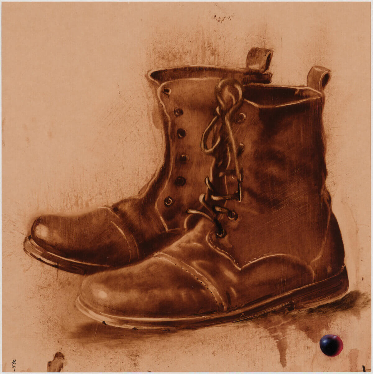 Sel perioodil keskenduski Gross selgemalt õlimaalidele ning süvenes pallaslikule maalikäsitlusele ja pruunide alatoonide dekodeerimisele, kandes selle kaasaegsesse tsitaatide ja sümbolismi keelde. Teos on nostalgiliselt kerge ning üheaegselt nii jõuline kui elegantne. Saapad ja kirss mõjuvad nii reaalse kui unenäolise märgina, asetades kujundi alateadvuse piirialale, kus hetkeks peatub aeg, et märgata ühel saapal puuduvat paela.