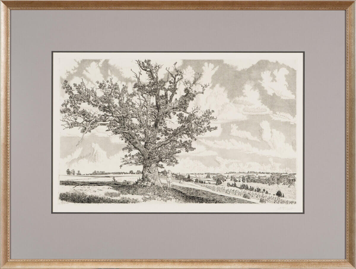 Eduard Wiiralti (1898-1954) ikoonilisemaid Eestimaa kujutisi, “Viljandi maastik” sündis 1943. aasta suvel, mil kunstnik viibis Viljandimaal. Seda võimsat puud, mida hiljem hakatigi tundma kui “Wiiralti tamme” ning mis 1959. aastal looduskaitse alla võeti, oli Wiiralt märganud juba ammu, kuid 7. augustil 1943 alustas ta lõpuks selle graveerimist.