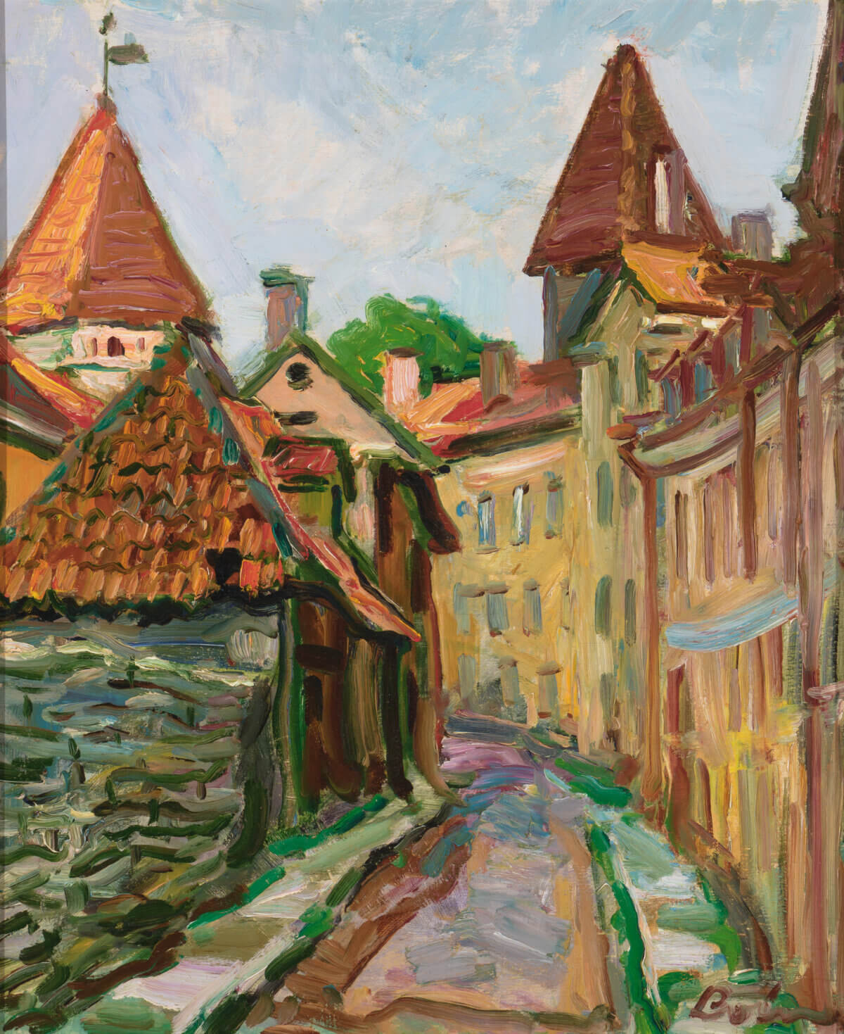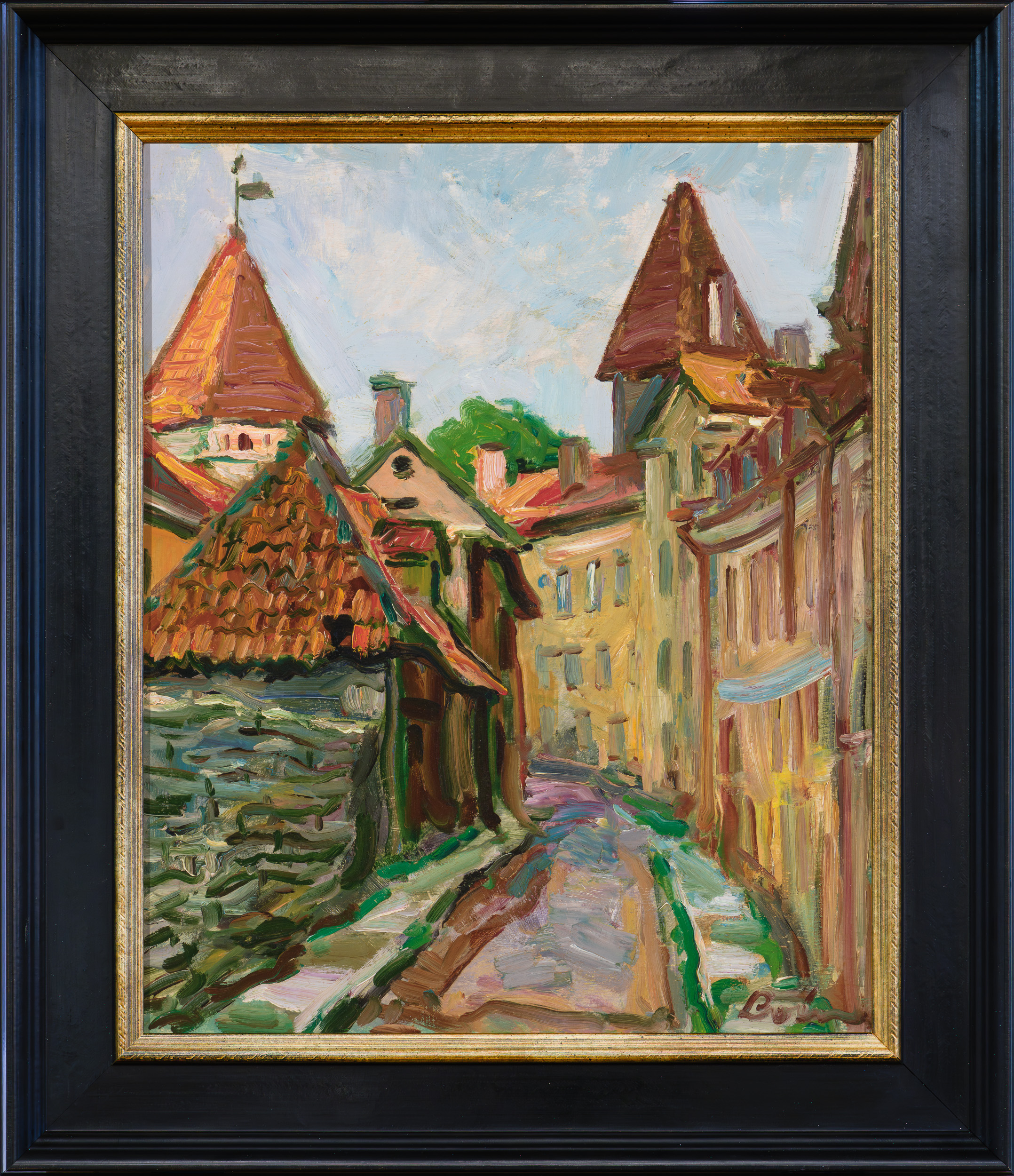 Valerian Loigu (1904-1986) loomingus on linnavaated olulisel kohal, eriti motiivid, mis pärinevad Tallinna vanalinnast, seekord Gustav Adolfi Gümnaasiumi taga asuvalt Kooli tänavalt.
