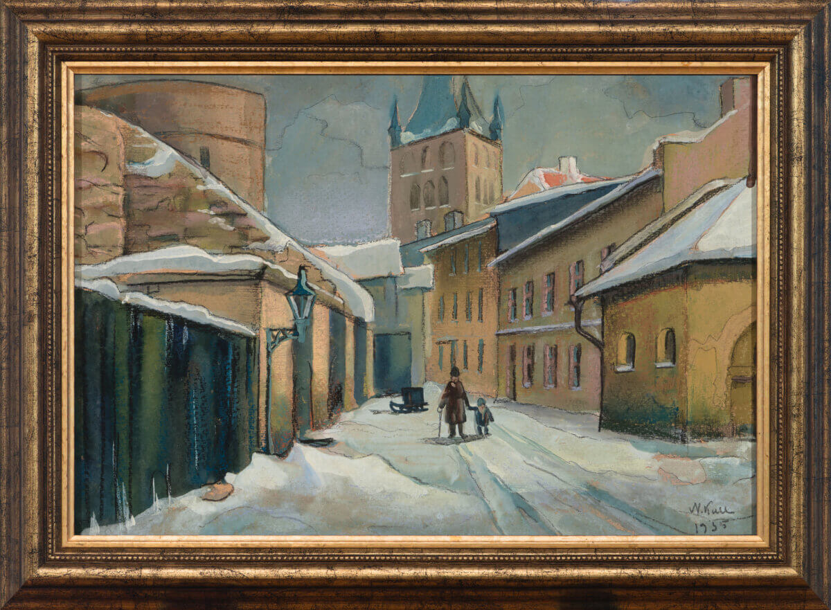 Tallinna vanalinn on olnud alati Kulli suuri armastusi ning käesoleval teosel lisab ta sellele inimliku mõõtme – mees käsikäes lapsega. Me ei tea, kas tegu on isa või vanaisaga, ent olulisem sellest on emotsioon – kvaliteetaeg kahele. Taamal Niguliste kirikutorni kõrvalt välja kikitav punane katus lisab teosele korraga nii elavdava aktsendi kui noodi soojust talviselt kargesse ilma.