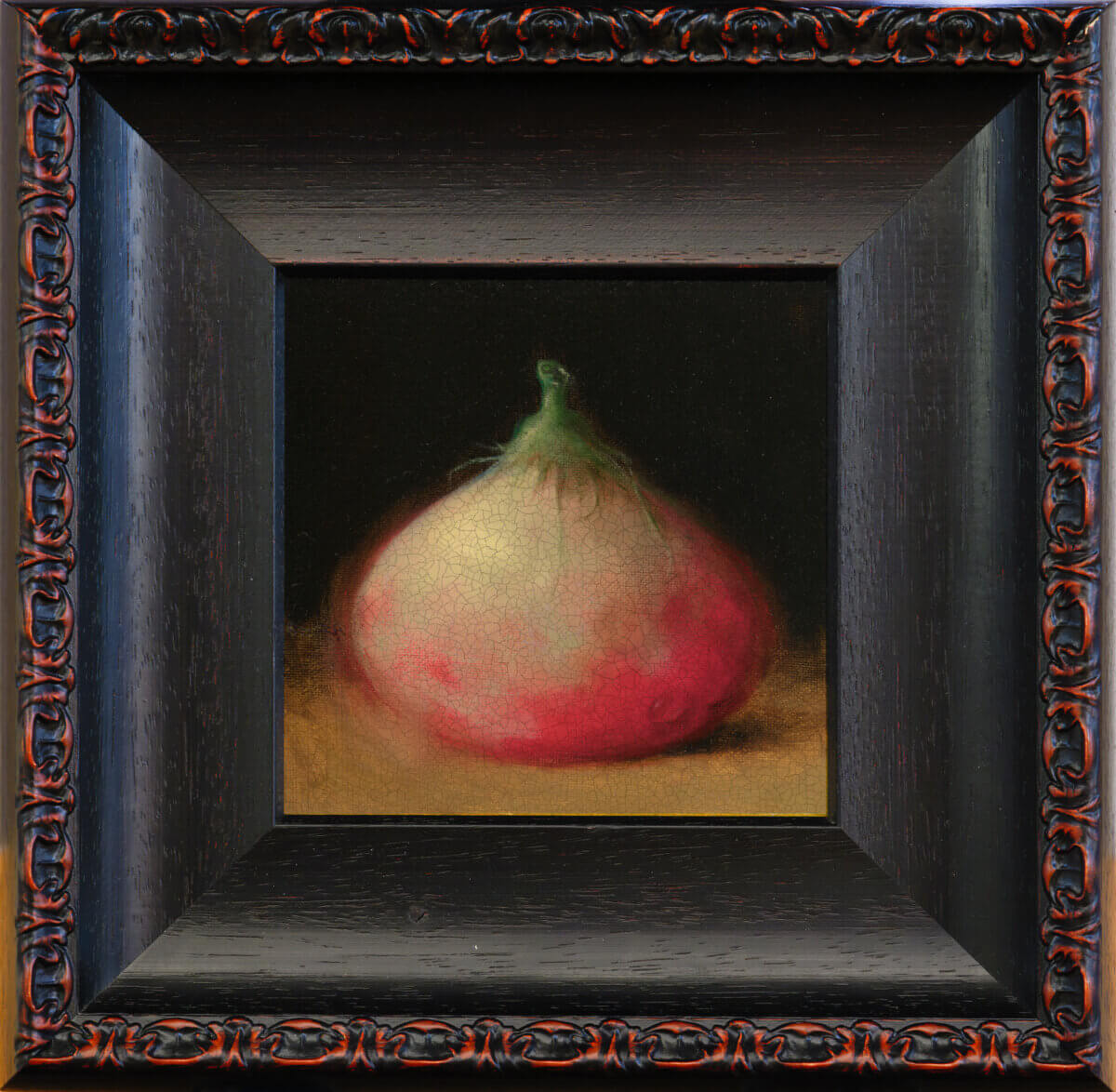 Eesti metafüüsikasse ja sürrealismi kalduva campkunsti esinumbri Laurentsiuse (kodanikunimega Lauri Sillak, s. 1969) maal kujutab vilja. Aga küsimus, kas meie ees on puu- või juurvili, on intellektuaalse spekulatsiooni kõrgpilotaaži väärt – kuigi, kas me siis ikkagi tõeni jõuame? Maali seisukohalt aga polegi see oluline, tähtis on teosest õhkuv visuaalne intriig ja maaliline täiuslikkus. Laurentsiuse võime leida viljadest ammendamatut inspiratsiooni ning seda meile igal korral taas värskena esitleda, on kadestamisväärne. Illusoorne realism on tema loomingus endiselt esiplaanil, nagu ka maailma tajumine kummaliste asjade kogumina.