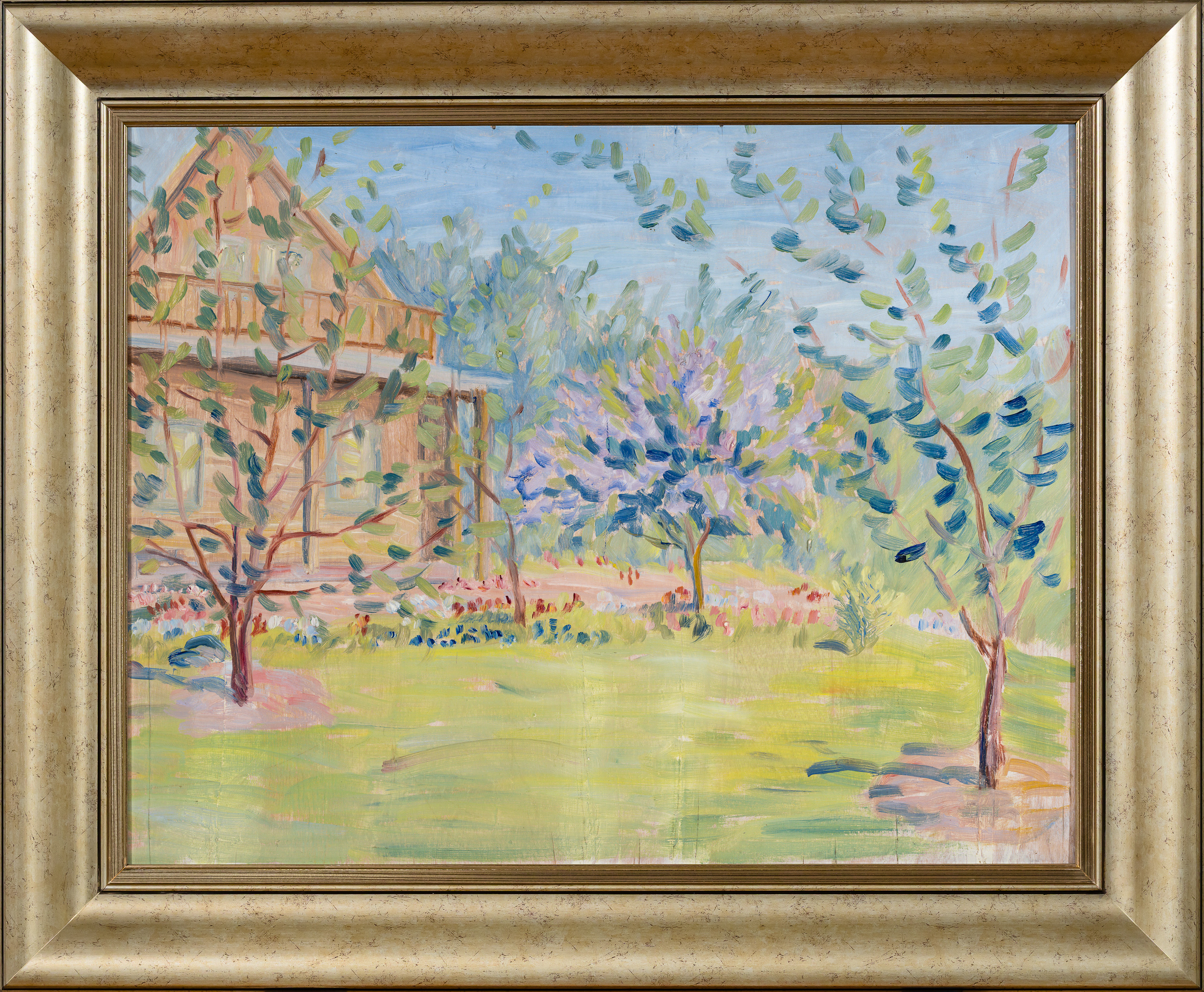 Helgus ja värskus iseloomustavad ka käesolevat, hetke meeleolu tabamisele keskendunud maali, milles võluvad õhuvirvendused ja kiire pintslitöö. Tuules võbelevad puulehed esiplaanil ja tinglikult maalitud metsaviir taustal moodustavad ühe maalilise terviku, millesse harmooniliselt sulandub ka maja. Kujutage vaid, kui mõnus oleks sealsel rõdul istudes hommikust kohvi nautida – miljonivaade õitsvale aiale!