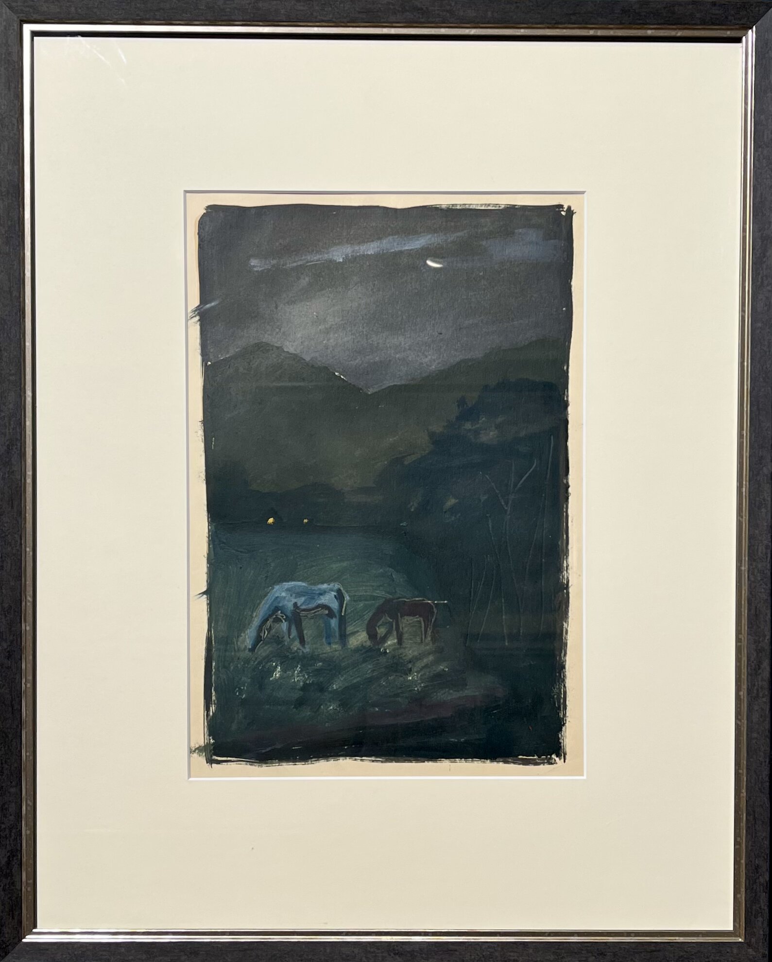 Õli, monotüüpia paberil. Raamitud.