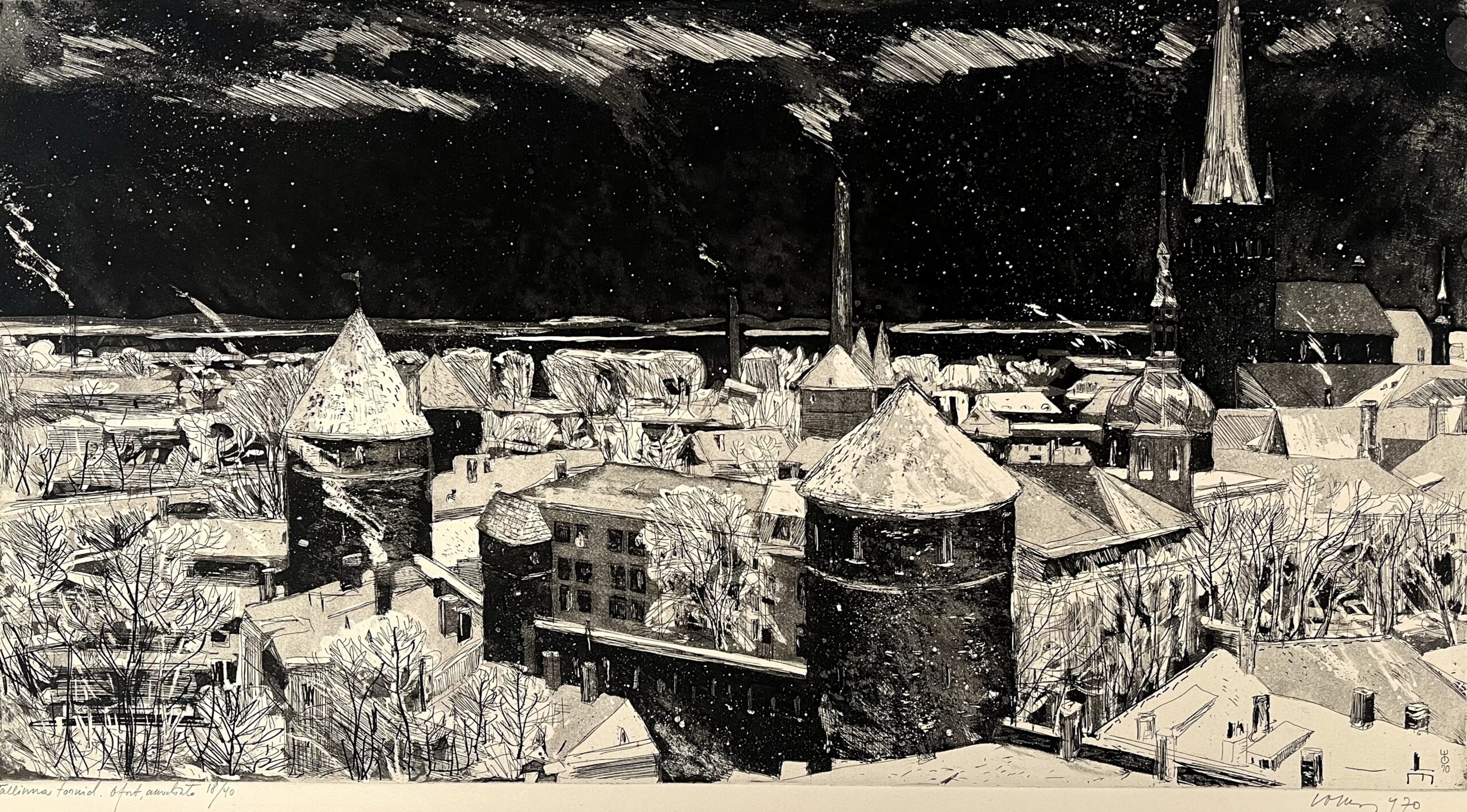 Maailma mainekates kunstimuuseumides ja erakogudes oma teostega esindatud Evald Okas armastas Tallinna vanalinna, mida kujutas erinevates graafikatehnikates.
