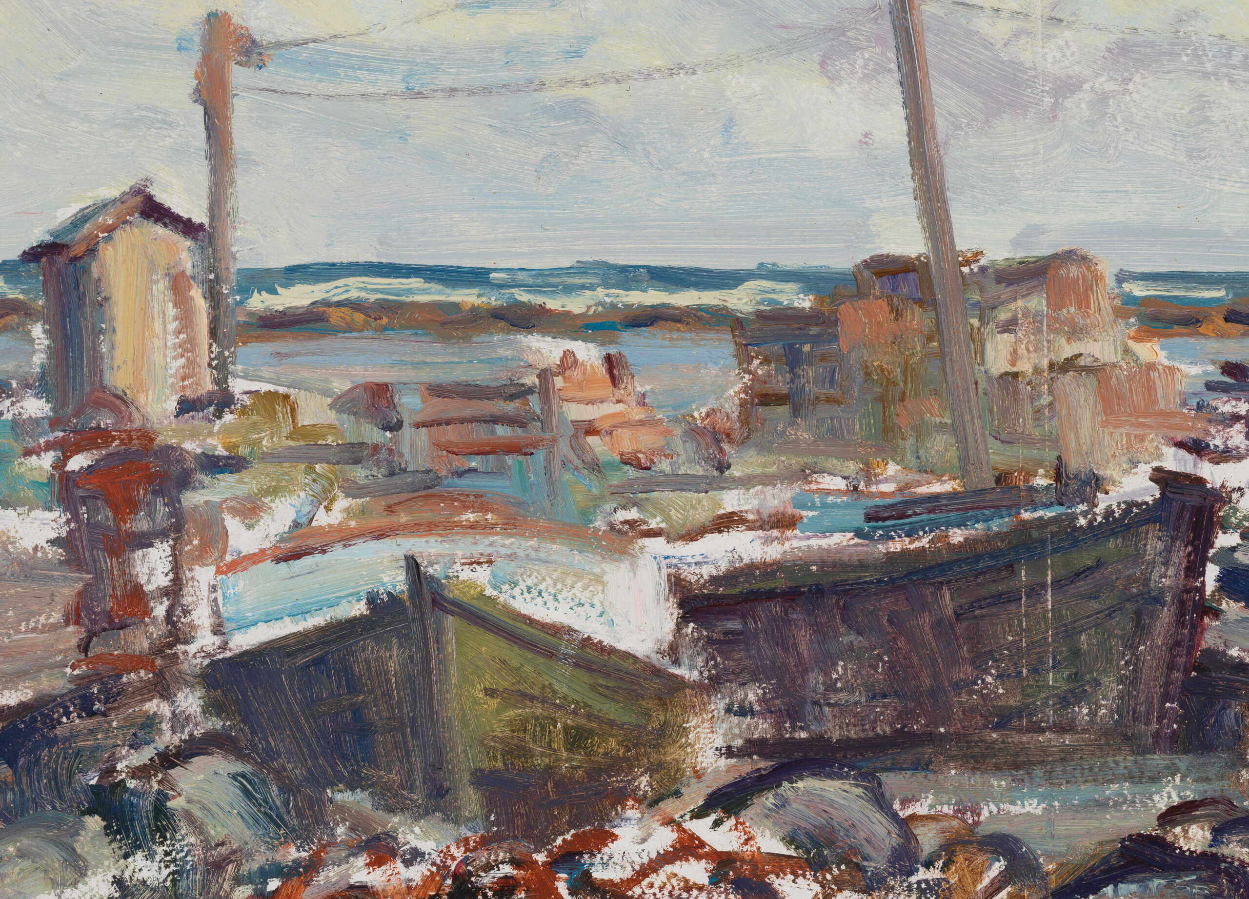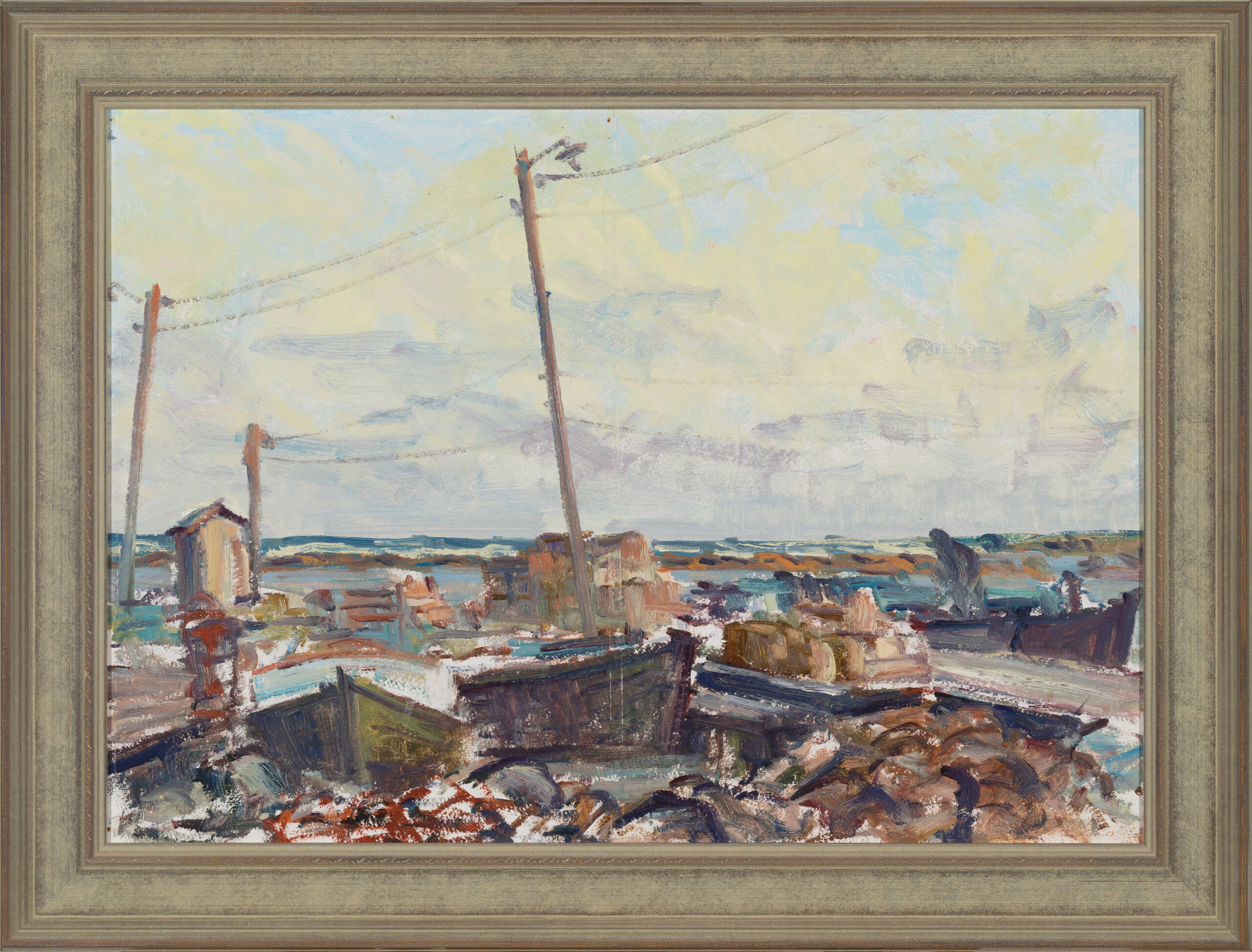 1960ndatel maalis Aavik nii Norras kui Eestis Pranglil. Suure tõenäosusega on ka käesolev teos just viimasest inspireeritud. Maali maalähedased toonid annavad edasi ranna ja mere jahedust, ekspressiivne maalilaad järgib täpselt nii vormi kui tuulte teekonda. Maali tsentris olev latern poolitab maali ja suunab pilgu helendava avaruse poole, kus hallide ja õrnlillade pilvemassiivide vahelt kumab helesinine taevas maheda kollasega. Just see viimane kõlab omamoodi kokkuvõttena tema elufilosoofiast, kus ta karmi kalurielu nimetab möödunud elu ilusaimateks loomingupäevadeks.